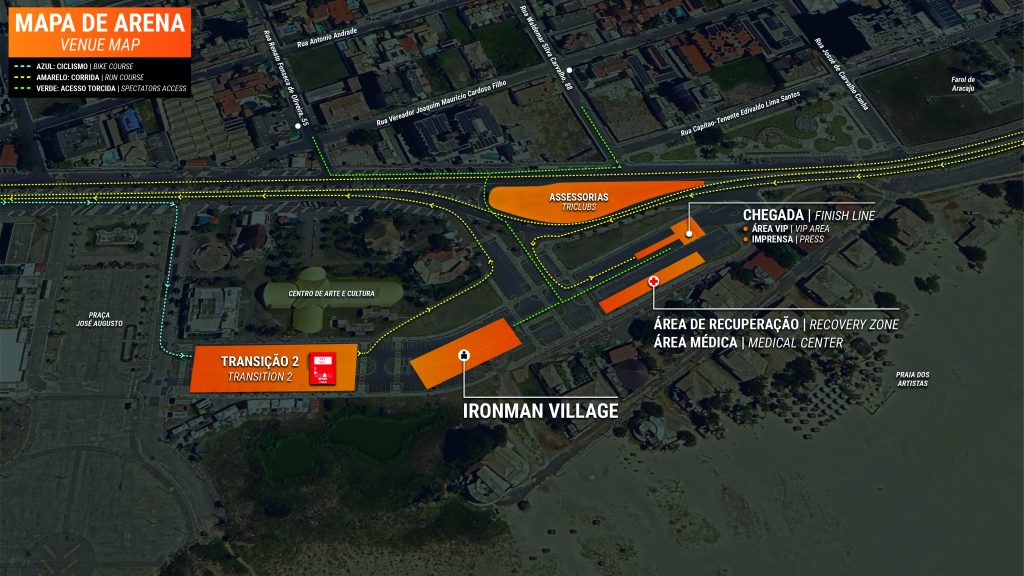 IMPORTANT: The distance from the Swim Start to Transition 2 and the Finish Line at Atalaia Beach is approximately 20 kilometers. On race day, travel time between these points is estimated to be between 40 minutes and 1 hour, depending on local traffic and the restrictions in place for the cycling route.